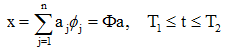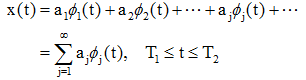 ,则x(t)可用已知的正交函数集{φj(t), j=1,2,…}的线性组合来展开,即: