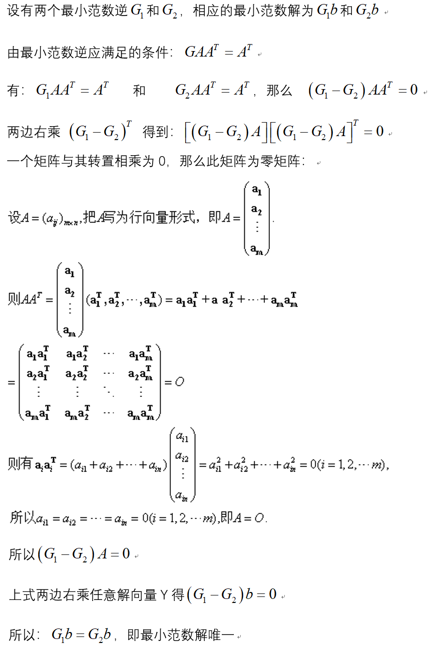 那么 Gb 就是相容方程组Ax=b的最小范数解,并且方程组的最小范数解唯一。这里的G就是最小范数逆。