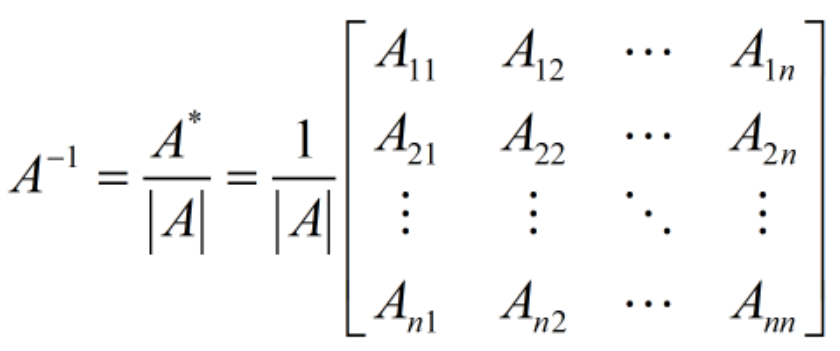 求矩阵的逆最常用的方法:一个矩阵的逆等于其伴随矩阵与其行列式之比!