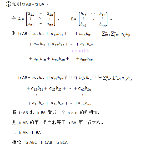 以上就是害羞纸飞机最近收集整理的关于关于矩阵的迹的几个性质证明的全部内容,更多相关关于矩阵内容请搜索靠谱客的其他文章。