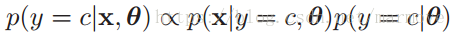 最终我们就是要对模型进行预测,就是给你一个,你告诉我它是属于哪一个类别的。我们这个是生成模型,很明显就是用贝叶斯公式。所以: