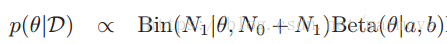 ,先验与后验具有相同的形式。所以对于伯努利分布,我们选择的先验是Beta分布: