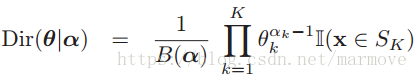 同样的为了就是计算的简单,我们要选择一个共轭先验,就是(狄里克雷)Dirichlet分布,具有如下的形式: