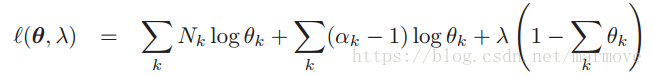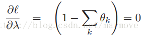 ,这里取了个log方便计算,并将等式约束(也就是各项求和为1)消掉。接下来就是分别对