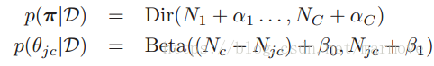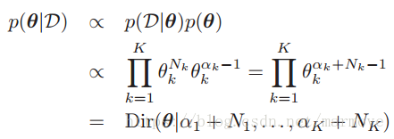 ,这个就是对应于add-one(拉普拉斯平滑)。那么通过先验乘以似然函数,就得到了后验