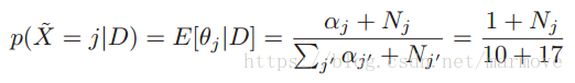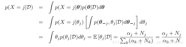 ,这个其实就是对狄里克雷分布求期望,前面章节中有相关结论。