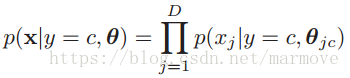 ,然后利用公式2.13进行分类。在这里需要作一个假设,那就是特征的每一个分量关于类别是条件独立的。也就是