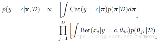 ,这一块就是用后验分布估计去做,因为上面我们已经求的了关于参数的后验分布,所以有: