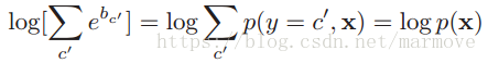 ,第二部分是分母中与y无关的常数项。那么这样我们就需要计算一个关于log-sum的项: