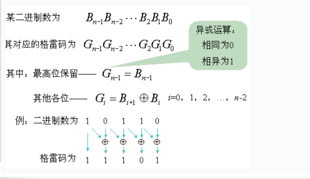 二进制格雷码转换成二进制码,其法则是保留格雷码的最高位作为二进制码的最高位,而次高位二进制码为高位二进制码与次高位格雷码相异或,而二进制码的其余各位与次高位二进制码的求法相类似。