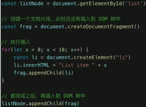 2,频繁操作作为一次性操作,应用document.createDocumentFragment()