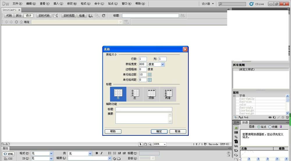 1、首先,打开软件,新建一个表格。大小最好是根据素材或者是网页布局还决定。不插入无所谓,就是习惯了。