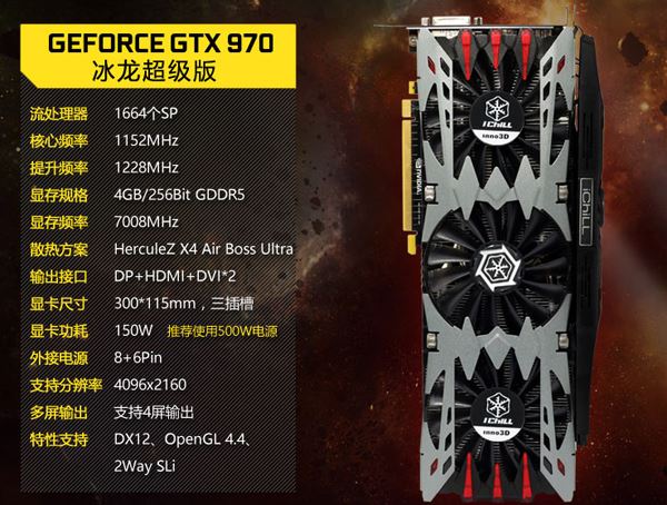 显卡映众 GTX970 ULTRA冰龙超级版 ICHILL¥2399