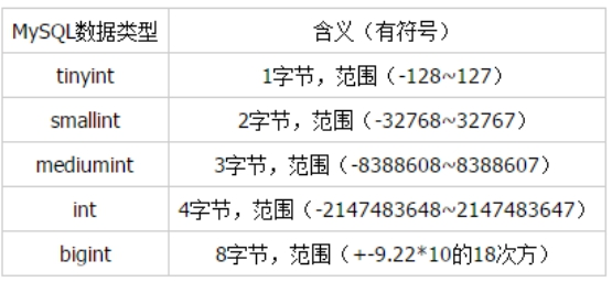 上面定义的都是有符号的,也可以加上unsigned关键字,定义成无符号的类型,那么对应的取值范围就要翻番了,比如:tinyint unsigned的取值范围为0~255。