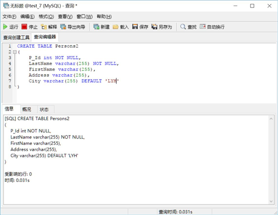 default属性确保在没有任何值可用的情况下,赋予某个常量值,这个值必须是常量,因为MySQL不允许插入函数或表达式值。此外,此属性无法用于BLOB或TEXT列。如果已经为此列指定了NULL属性,没有指定默认值时默认值将为NULL,否则默认值将依赖于字段的数据类型。例如: