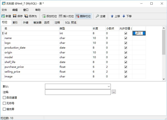 3.如果要设计一个表用来存放商品的基本信息,包括商品编号、商品名称、品牌商标、型号、产地、生产厂商、生产日期、保质期、进货价格、销售价格和商品图片等。请设计出这个表的表结构,包括表名、列名、列的数据类型和长度等等。