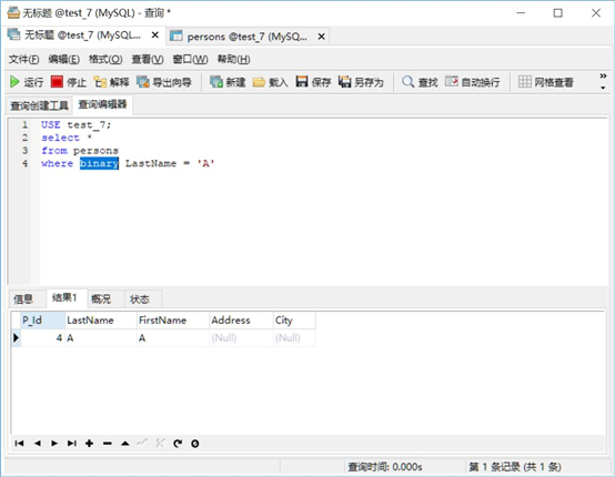 binary属性只用于char和varchar值。当为列指定了该属性时,将以区分大小写的方式排序。与之相反,忽略binary属性时,将使用不区分大小写的方式排序。例如: