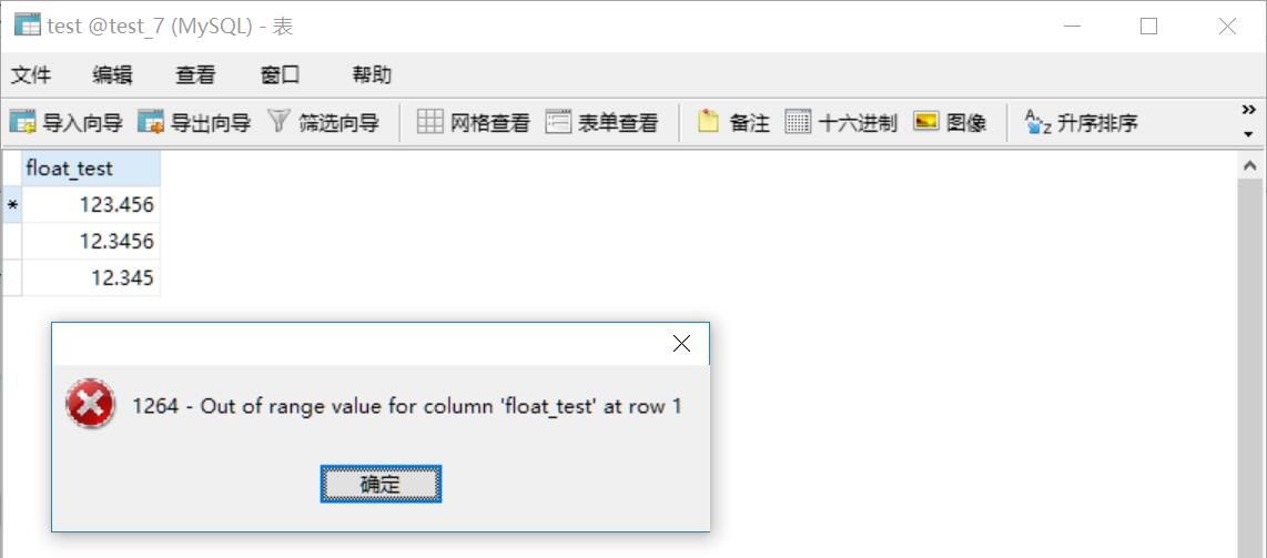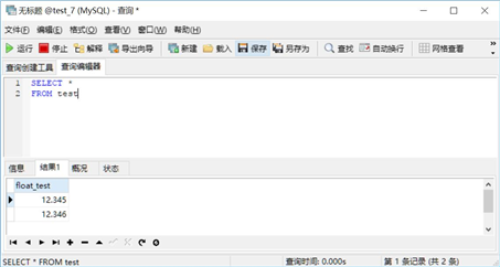 12.3456变为12.346,原因分析:float(5, 3)由整数部分2位和小数部分3位构成,整数部分超出时无法保存,小数部分被四舍五入后截断