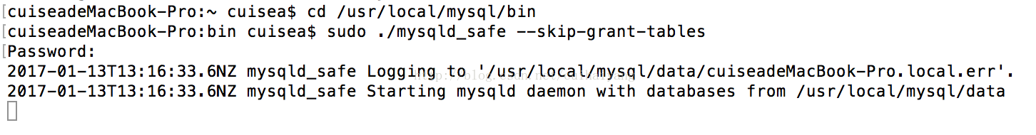 以上就是端庄帅哥最近收集整理的关于Mac下MySQL5.7忘记root密码的解决方法的全部内容,更多相关Mac下MySQL5.7忘记root密码内容请搜索靠谱客的其他文章。