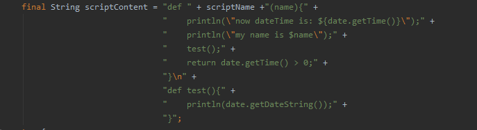 final String scriptContent = "def " + scriptName +"(name){" +