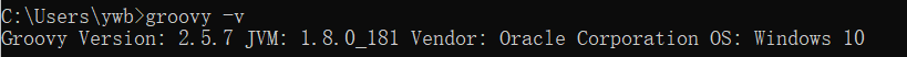 3.验证,在cmd中输入groovy -v即可看到自己groovy版本,如下图所示