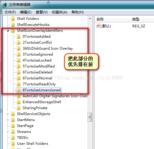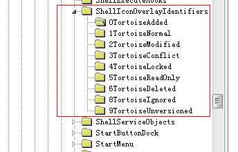 对于我自己机器, 看了下注册表,ShellIconOverlayIdentifiers的目录树如下: