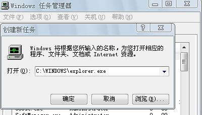 在打开中输入:C:WINDOWSexplorer.exe 单击确定即可!