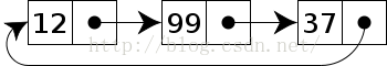 前面我们学习了单向链表,现在介绍单向循环链表,单向循环链表是单链表的一种改进,若将单链表的首尾节点相连,便构成单向循环链表结构,如下图: