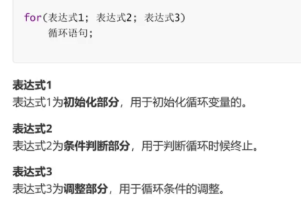 for循环是编程语言中一种循环语句,而循环语句由循环体及循环的判定条件两部分组成,其表达式为:for(单次表达式;条件表达式;末尾循环体){中间循环体;}。