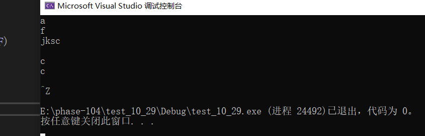 这样你就会按字符就会输入按到ctrl+z就会结束程序