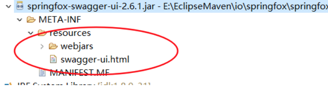 我们可以看到 在我们 加入 springFox 依赖之后,我们项目的依赖管理里面出现了springfox-swagger-ui-2.6.1.jar,我们 点进去,在里面的 resource中 有一个html文件