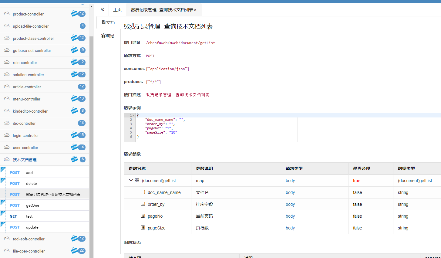 @Api(value = "技术文档管理接口",tags = "技术文档管理",protocols = "http")