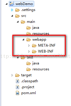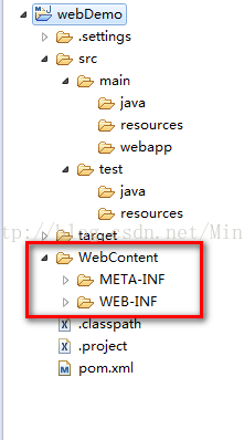 6、将“WebContent”下的“META-INF”和“WEB-INF”都移放在“src/main/webapp”下,并将“WebContent”目录删掉;