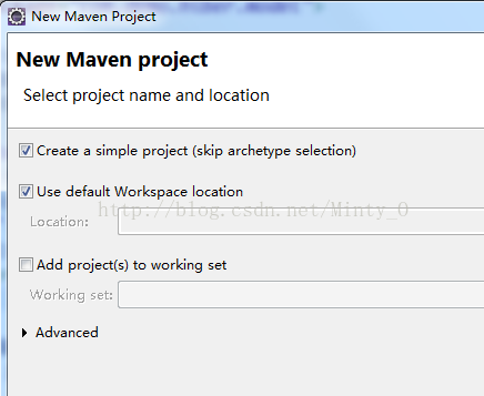 2、勾选“Create a simple project”(不使用骨架)——“Next”;