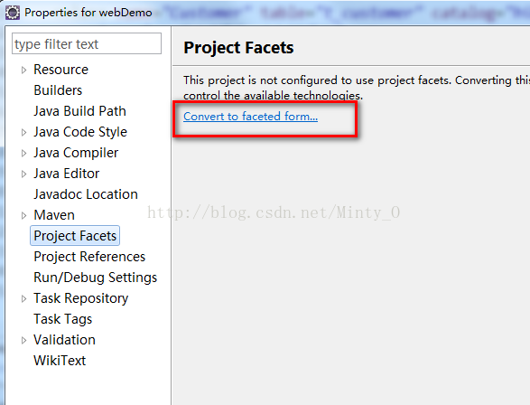 4、项目右键——“Properties”——“Project Facets”——“Convert to faceted form”;