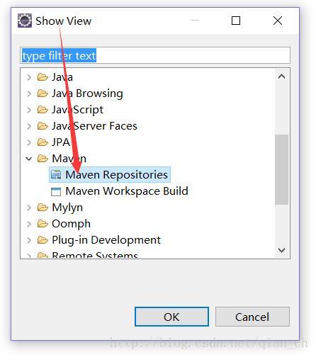 第三步:打开window—>showview—>other—>Maven—>Maven Repositories,点击“OK”,如下图。