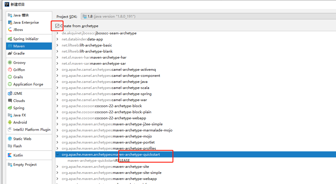 1.新建项目里选:quickstart