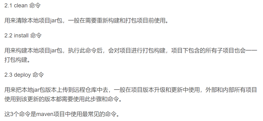 可以仔细看下他第二部分介绍的三个常用命令(clean,install,deploy)