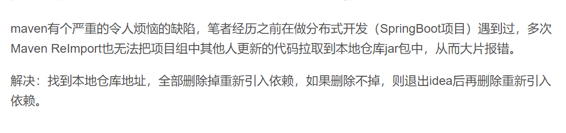 鼠标右键右击 Maven——>ReImport 重新引入依赖,会把外部引入的依赖jar包更新到本地仓库中。