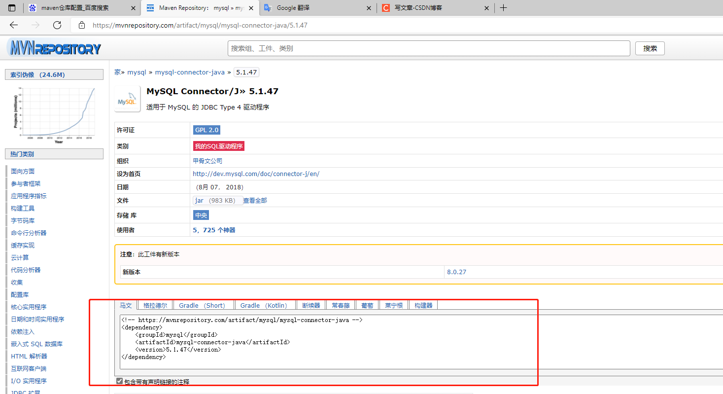 把网上找到并贴依赖包,网址是:https://mvnrepository.com/search?q=mysql