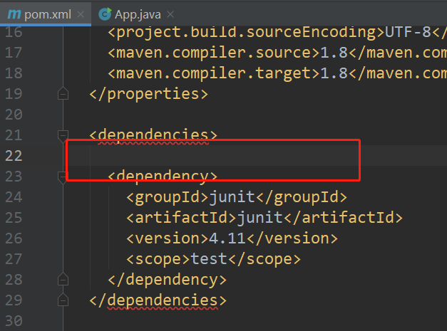 在<dependencies>的位置一般在21行左右