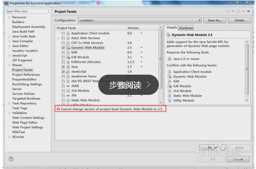 使用eclipse导入maven项目时,出现如图错误:cannot change version of project facet dynamic web module to 2.5。