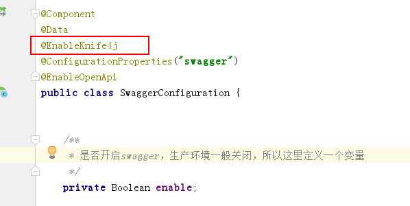 在上面配置Swagger的Swagger3Config中添加@EnableKnife4j注解,该注解可以开启knife4j的增强功能。