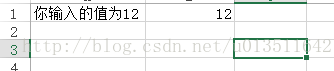 Sheet1.[a1] = "你输入的值为12"