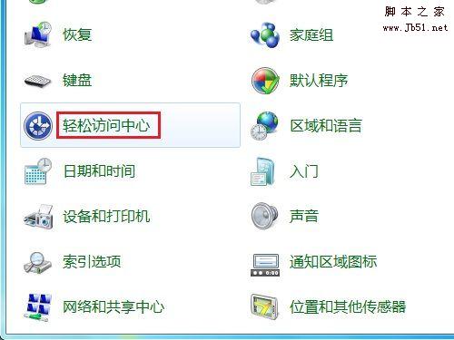 1,打开控制面板,以“大图标”方式查看,双击打开“轻松访问中心”,如下图所示: