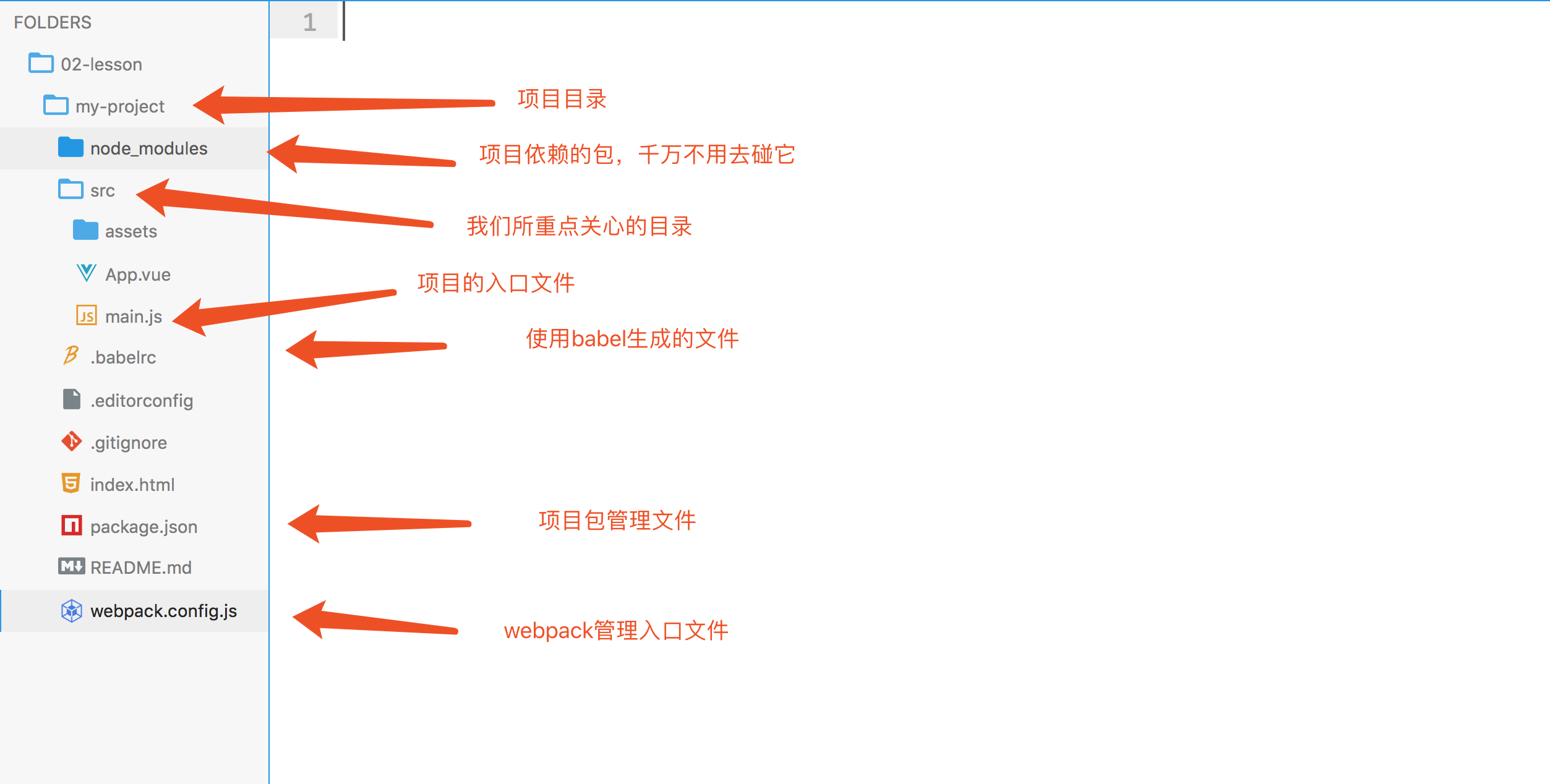 接下来我们我编辑器中打开我们的项目目录,查看一下结构: