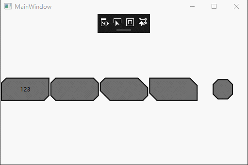 <Window.Resources> <Style TargetType="{x:Type local:BeveledBorder}"> <Setter Property="Background" Value="#90000000" /> <Setter Property="BorderBrush" Value="Black"/> <Setter Property="BorderThickness" Value="2"/> <Setter Property="Margin" Value="2" /> <Style.Triggers> <Trigger Property="IsMouseOver" Value="True"> <Setter Property="Background" Value="#90FF0000"/> </Trigger> </Style.Triggers> </Style> </Window.Resources> <UniformGrid Rows="1" VerticalAlignment="Center" MinHeight="50"> <local:BeveledBorder CornerRadius="10,0,10,0"> <TextBlock Text="123" HorizontalAlignment="Center" VerticalAlignment="Center"/> </local:BeveledBorder> <local:BeveledBorder CornerRadius="10,10,10,10"/> <local:BeveledBorder CornerRadius="10,20,10,20"/> <local:BeveledBorder CornerRadius="0,15,0,15"/> <local:BeveledBorder Width="40" Height="40" CornerRadius="10,10,10,10"/> </UniformGrid>