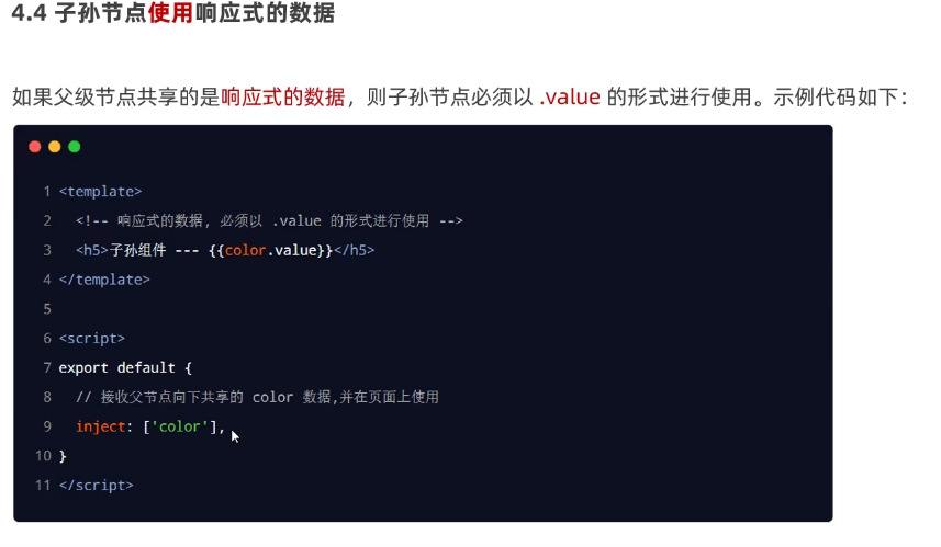 注意祖先级数据只会共享给子孙级,子孙级不可以修改。
