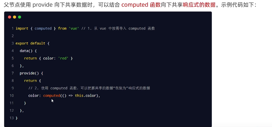 当我们想同步更新后代所接受的值时,可以使用computed函数: