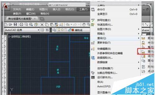 2、调出工具选项,用鼠标指着“查询Q”,激活查询命令。